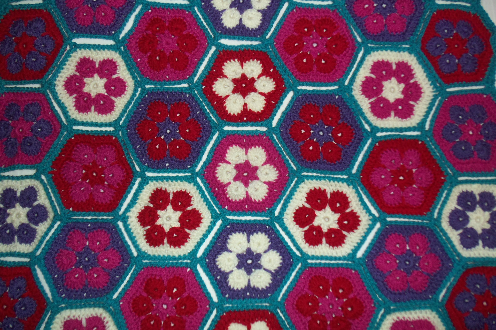 This time it’s going to be African Flowers in true ’70s colors – pink, purple, red, and turquoise. I’ve already started, and I have to say, I really love how it’s coming together so far!