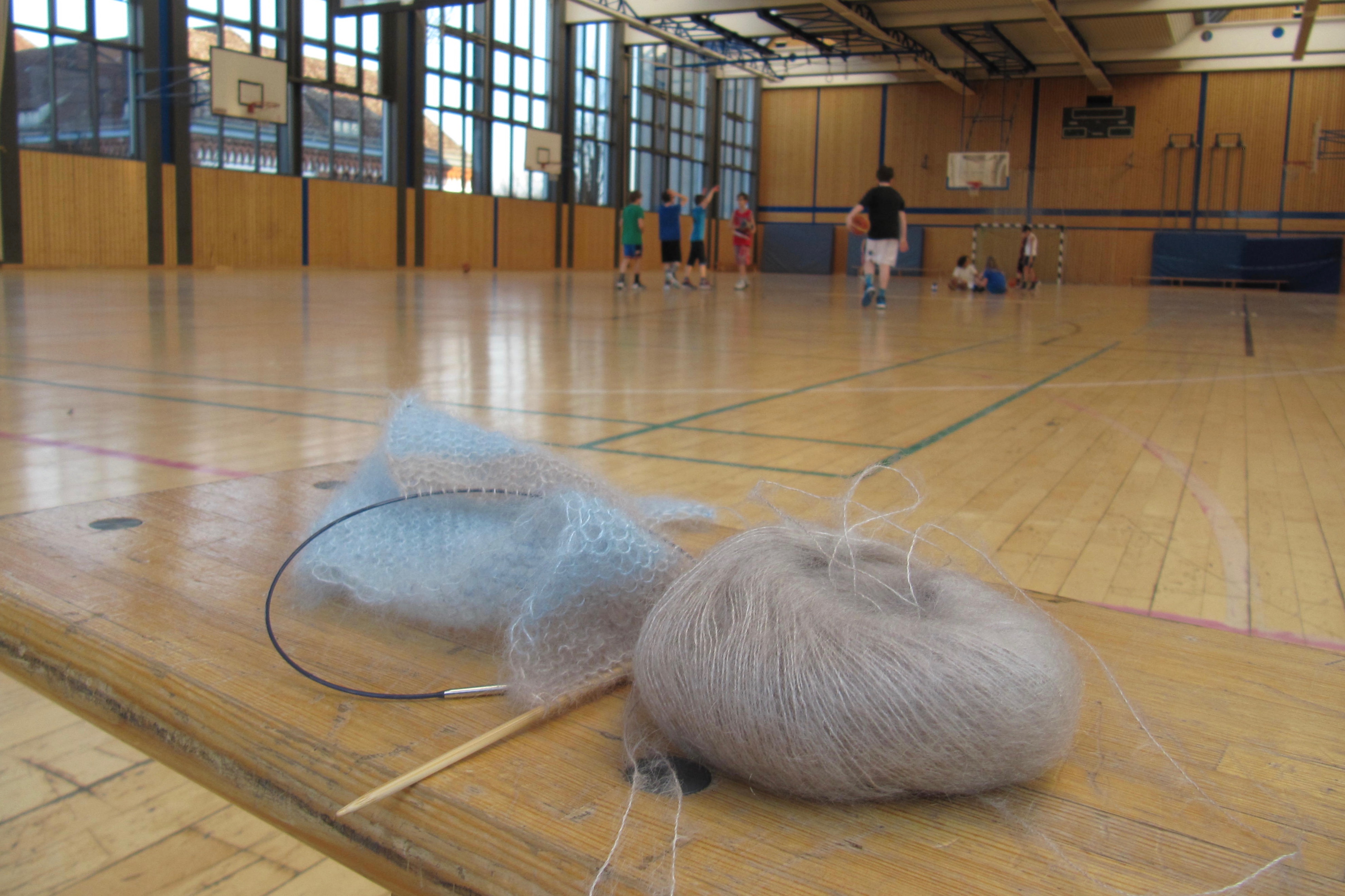 Too loud to make phone calls with each of the boys dribbling and bouncing (what feels and sounds like) hundreds of basketballs, I made it a habit to just sit and knit the time away.