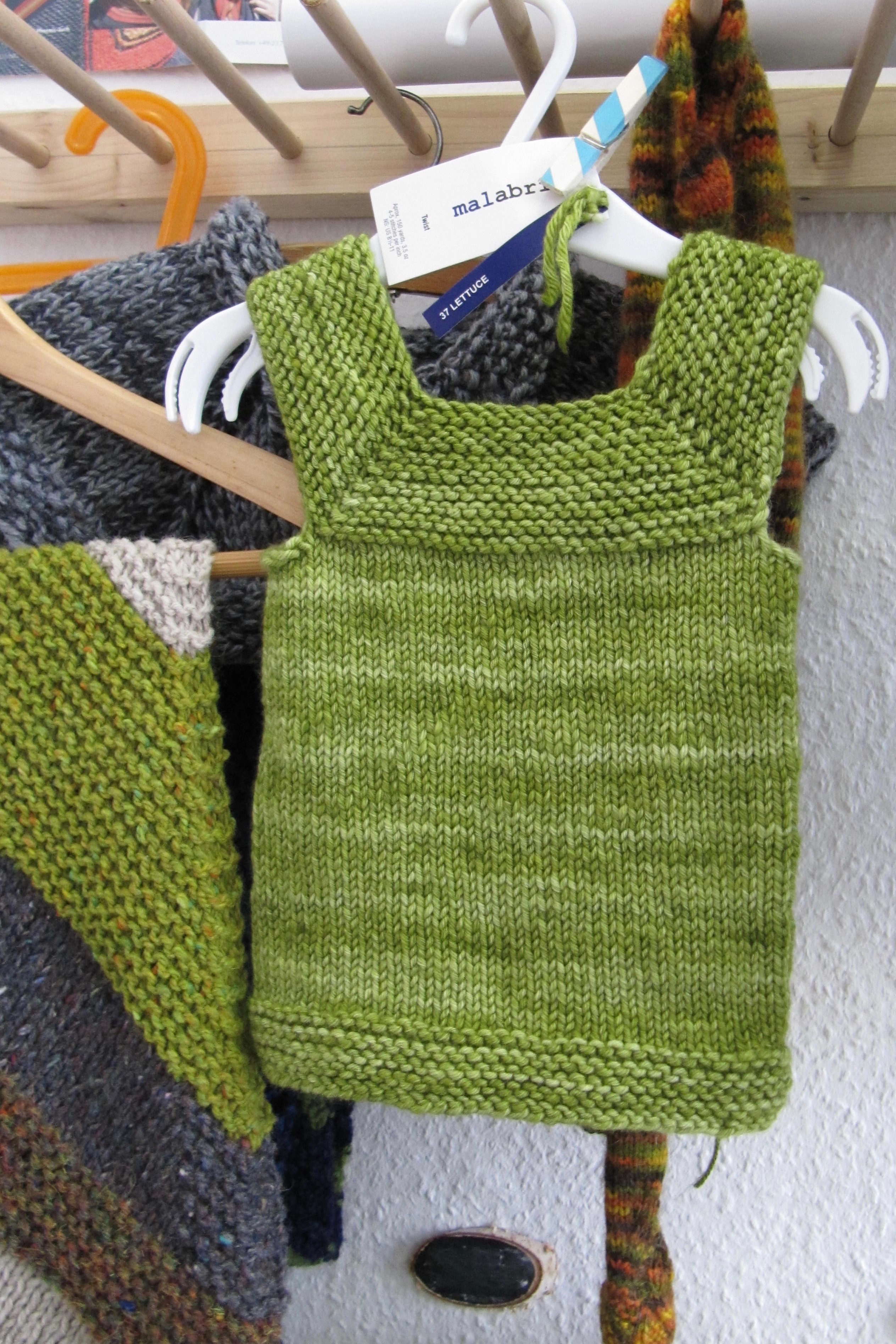 Rohrspatz & Wollmeise, Drachenwolle, Rowan, Selbstgefärbtes, Holst Garn, Filatura – das Sortiment ist wunderbar und bunt. Überall hängen Schals, Pullover, Tücher, alles zum Anfassen und alles selbst gemacht.