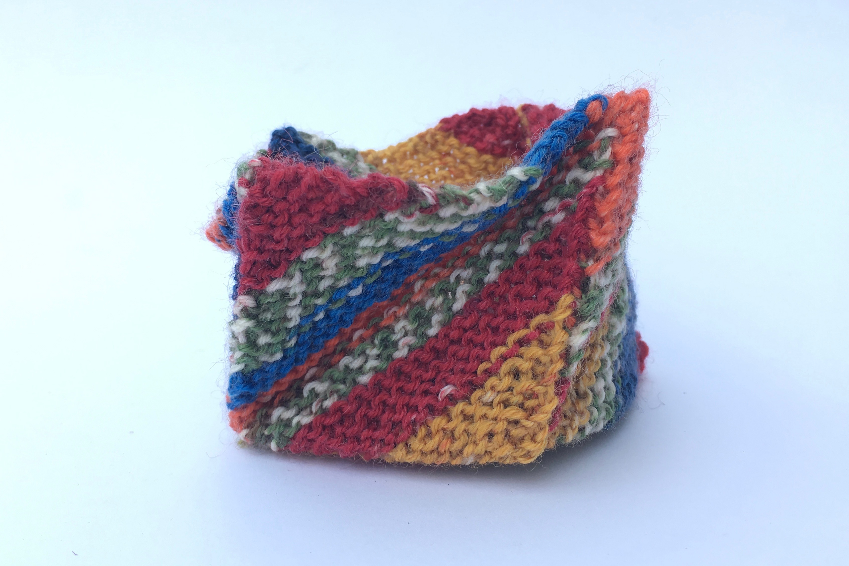 Denn nur so konnte ich rausfinden, ob es funktioniert. Ob sich ein pinwheel purse (da gibt es sicher auch ein deutsches Wort für, komme ich nur nicht drauf gerade) wirklich von alleine immer wieder zusammenfaltet und das tut es tatsächlich. Allerdings ist es so, wie ich stricke, leider gar nicht stabil, sondern irgendwie lappig. Ich hätte wahrscheinlich (noch) dünnere Nadeln nehmen müssen oder dickeres Garn. Habe ich aber nicht. Das heißt für Münzen taugt es nicht, bestenfalls für kleinen Schmuck oder andere leichte kleine Dinge.