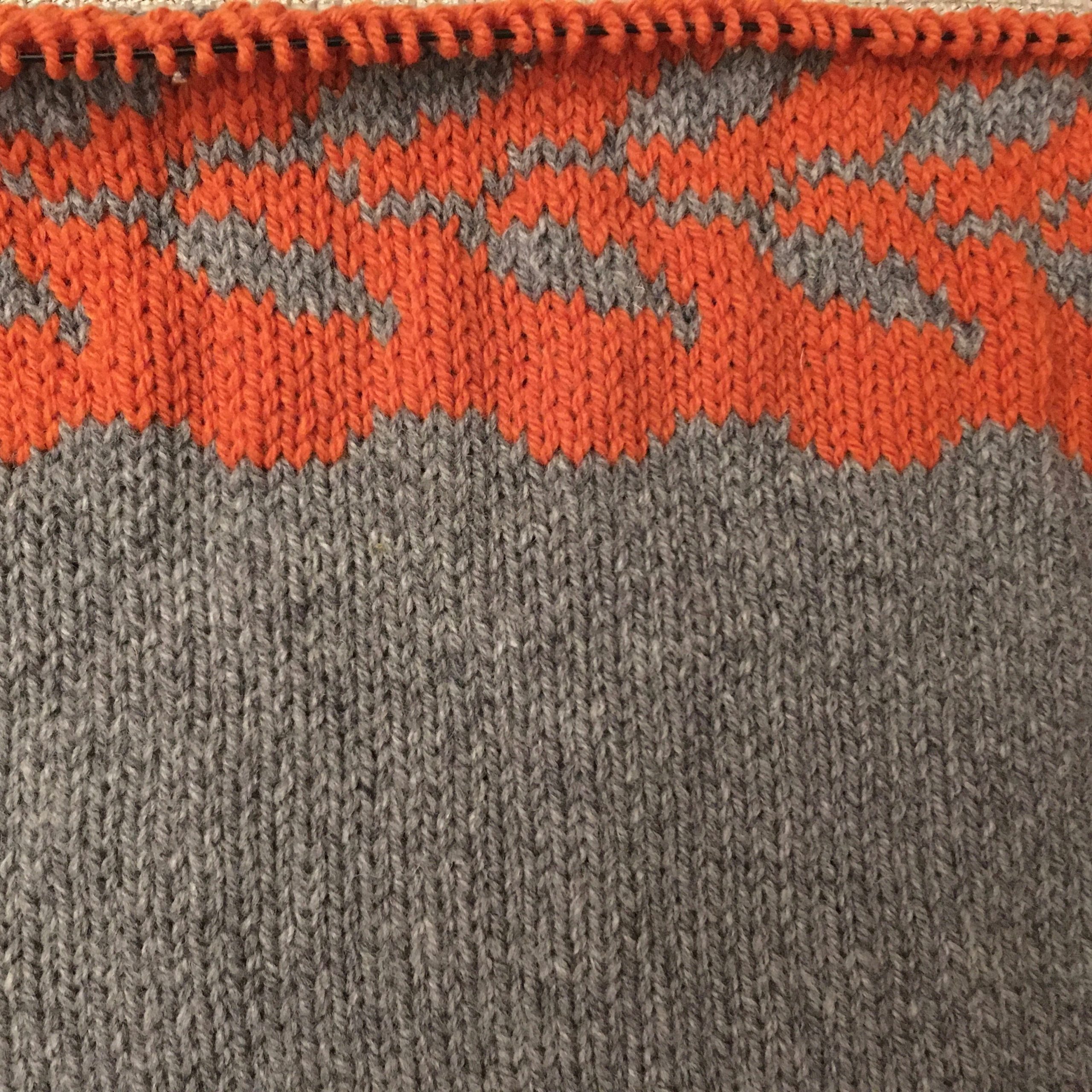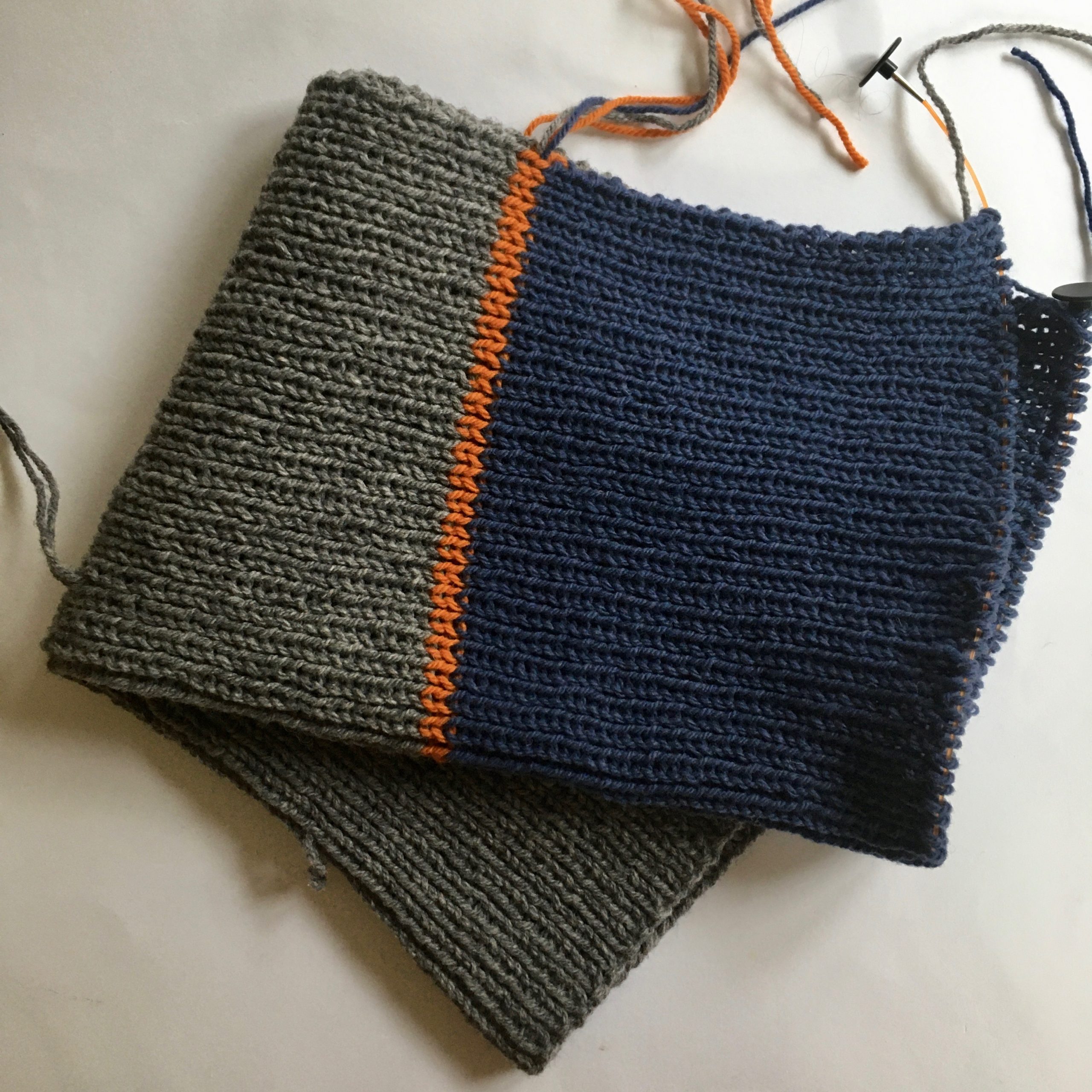 Seit Wochen stricke (und ribbel) ich Merino von Grossewolle in grau, blau und orange. Mit jedem Test, jedem Muster, jeder Idee gefällt mir das Garn besser. Eine tolle Struktur, schöne Farben, wunderschönes Maschenbild. Sollte ich eine Wolle zur Lieblingswolle erklären, wäre es momentan diese. Ungeachtet dessen, ob mein Projekt jemals fertig wird.