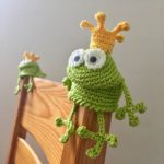 An meinem Fluß sitzen seit dieser Woche zwei Frösche. Die Froschkönigin und ihr Prinzgemahl. Gehäkelt nach der gleichen Anleitung sind es doch sehr unterschiedliche Charaktere geworden. Wenn sie so erwartungsfroh auf der Stuhllehne sitzen oder an der Tischkante mit den Beinen baumeln, erwische ich mich dabei, dass ich mit ihnen spreche. Verrückt!