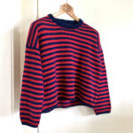 Von der rot-blauen Olga hatte ich schon geschrieben: gestrickt in den Wunschfarben der Patentochter ahnte ich schon im Vorfeld, dass der schöne Pullover nicht passen würde. Ich hätte Maße gebraucht, die über „L ist gut, das passt schon“ hinausgehen, habe versucht ihr zu vermitteln, dass Gestricktes immer eine Sonderanfertigung ist, Maßkonfektion sozusagen. Aber egal, wie oft ich nachgefragt habe, es blieb bei „L“.