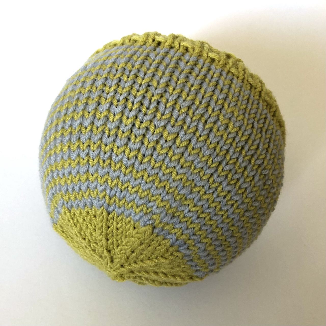 Spontan habe ich ein höfliches Nein gesagt, um dann aber abends doch nochmal darüber nachzudenken. Mag sein, dass mich ein hellblaues Knäuel Merino Big manipuliert hat, das neben mir auf dem Sofa lag. Je länger ich es ansah, umso sicherer war ich, dass es eine sehr coole kleine Babymütze in kraus rechts sein könnte.