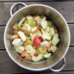 Aus dem gleichen Garn stricke ich nun einen anderen Strampler, meinen dritten portugiesischen Fofo. Vorausgesetzt ich finde passende Knöpfe, wird er heute Abend fertig. Alle anderen Projekte haben es nicht aus dem Kopf auf die Nadeln geschafft. Wahrscheinlich, weil hier mal wieder tonnenweise die Äpfel vom Baum fallen. Ich sammel und schnippel gefühlt täglich (was nicht stimmt), das Haus riecht danach – und nach Pflaumen, die zu Pflaumenmus geworden sind. Zuckerfrei und wirklich gut.