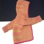 Four rows form one stripe; one stripe stands for one year. And while the stripes were blue around 1880 (that’s one end of the shawl), they are now red (that’s the other end). Dark red!