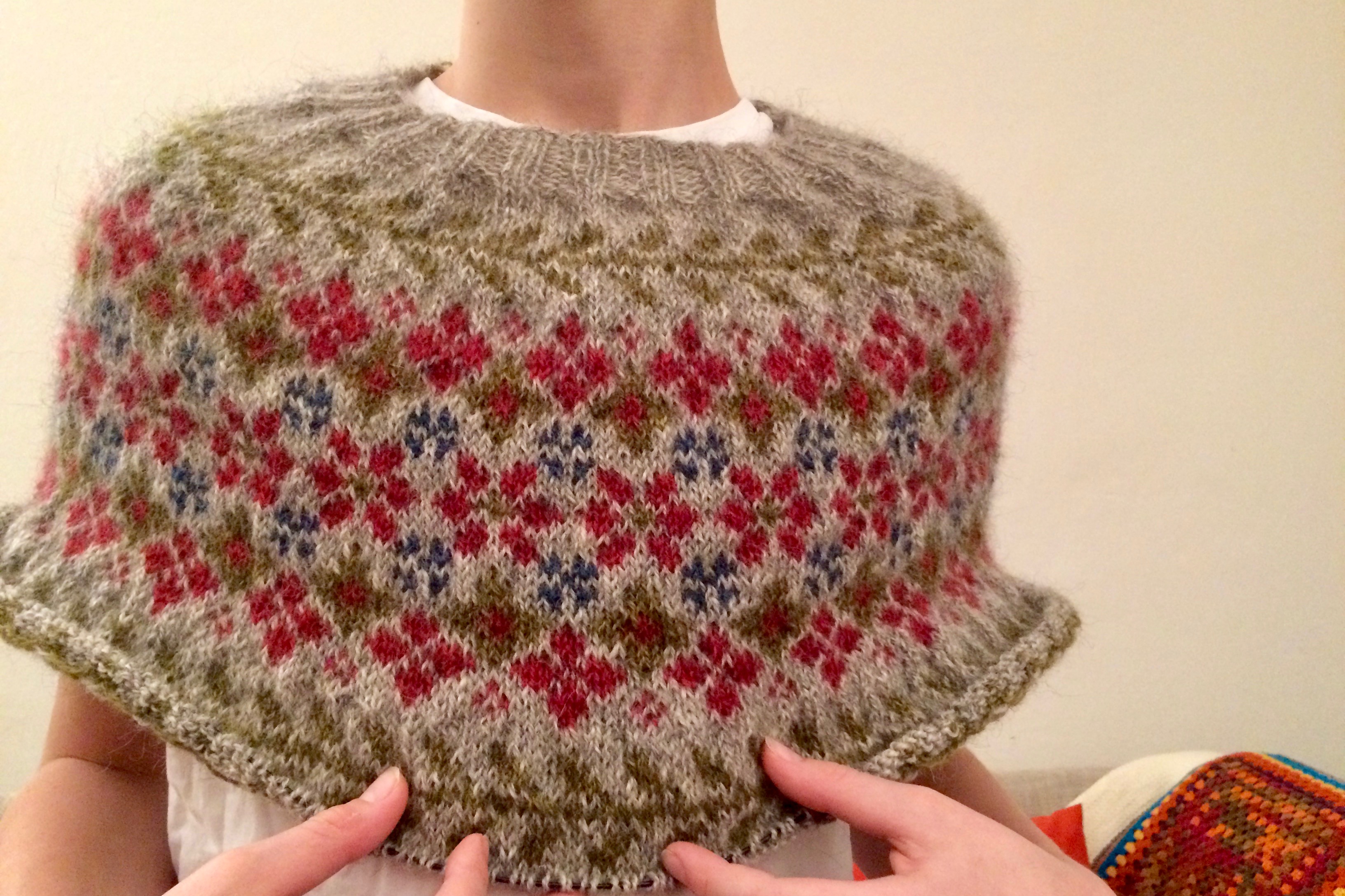 So, I started over in a sixth attempt and this time (Caitlin Hunter may forgive me) I would listen to Elizabeth Zimmermann, her book “knitting without tears,” and nobody else. Doing a swatch first and then the sweater – bottom-up instead of top-down, aran instead of fingering, three flowery twines instead of five and decreases adapted to my body. All of a sudden everything was easy. The sweater was done in a week.