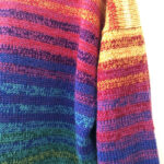 Glückliche Fügung, dass ich eine Freundin habe, die alle Farben des Regenbogens liebt und am liebsten wohl alle zusammen. Deshalb also eine dritte Olga. Ein oversized Pullover, der – so die Idee – mit doppeltem Faden gestrickt unglaublich bunt werden würde und unglaublich viele Wolle verbrauchen würde, ohne dass man es ihm ansehen würde. Das war die Hoffnung.
