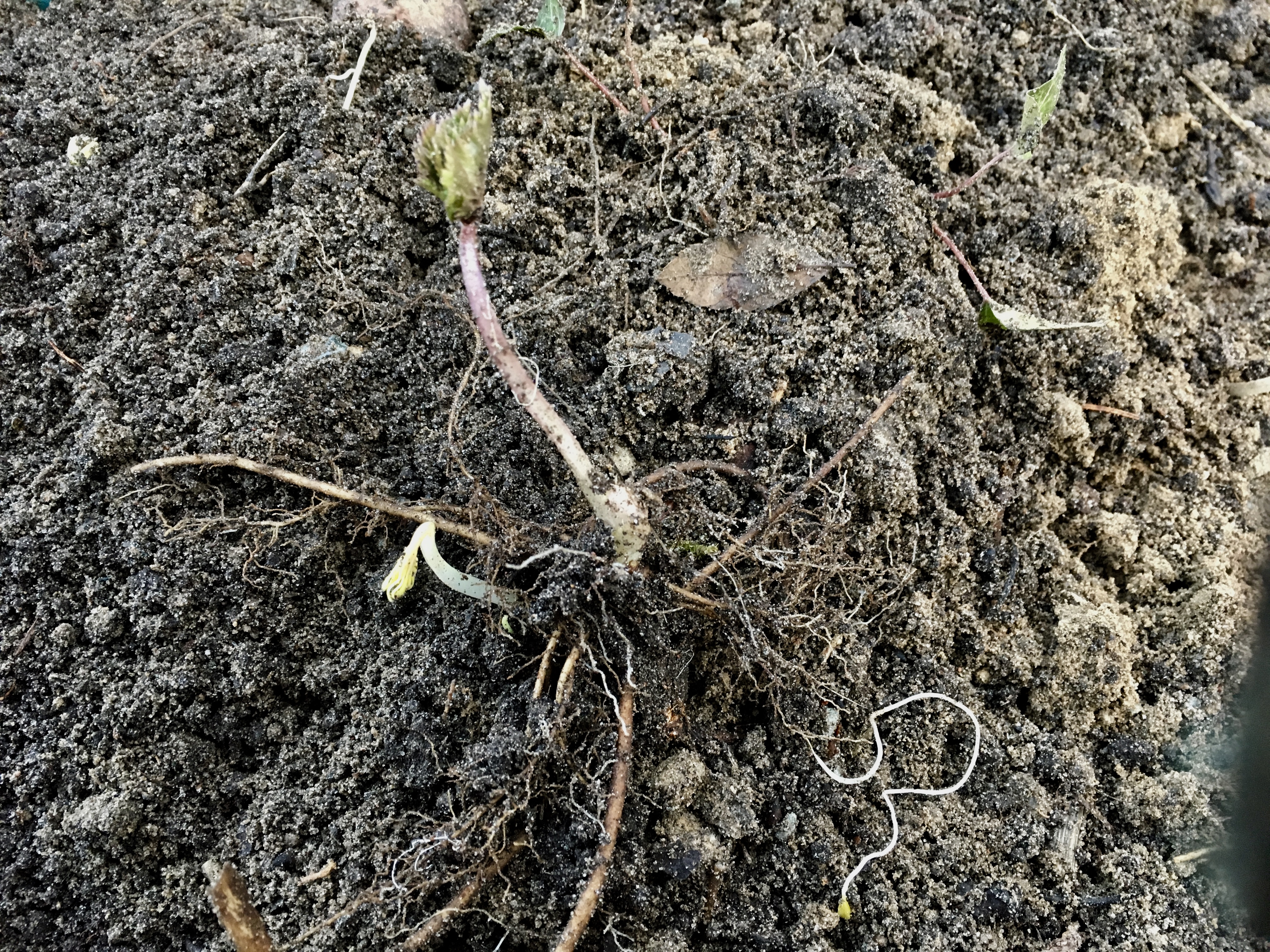 Um es positiv zu sehen: das Wetter ist klasse und so verbringe ich meine Nachmittage im Garten. Der Giersch ist noch so klein, dass ich ihn sehen und bekämpfen kann. Seit zwei Tagen grabe ich um und ziehe lange, gelbe Wurzeln. Giersch ist eine Hydra. Jedes winzige Wurzelstück, das ich nicht erwische, wird wieder eine Pflanze. Größer und stärker als zuvor. Ja, da kann man Salat draus machen, ich weiß. Will ich aber nicht. Ich könnte ganz Berlin mit Giersch-Salat versorgen, ach was: Norddeutschland …