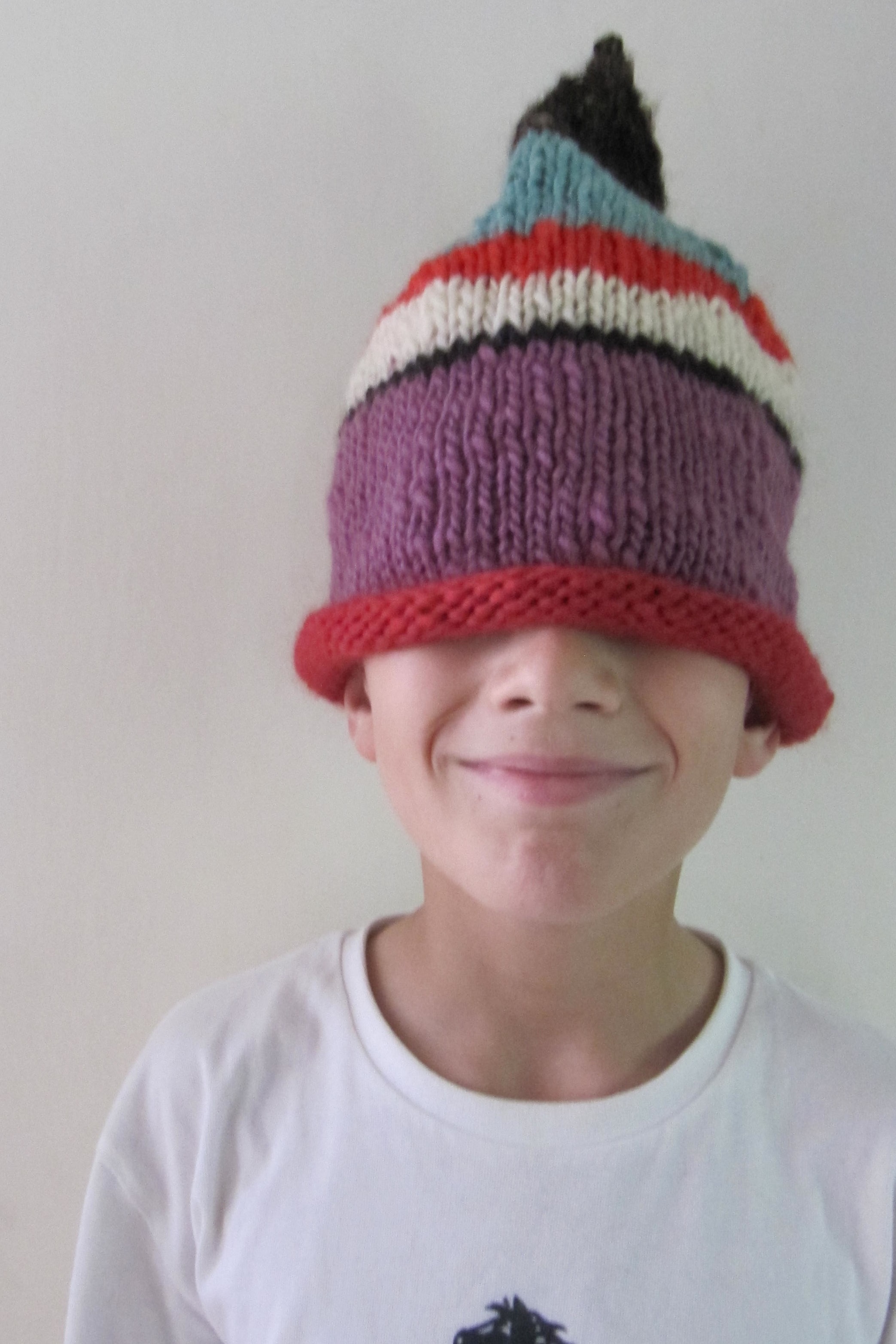 Bei der neuesten Tomten-Jacke (die fünfte übrigens), ist mir beim zweiten Ärmel die Wolle ausgegangen und ich habe mit den letzten Resten improvisiert. Deshalb sind die Ärmel nicht identisch. Und nachdem kein passendes Kind in der Nähe war, um die Jacke einmal anzuziehen, sind auch die Bilder Improvisation. Jacke mit Melone. Irgendwann werde ich den Reißverschluß eingenäht haben. Wie ich mich kenne, ist es dann auch längst kälter draußen und wer weiß – vielleicht finde ich dann das Kind, das die Jacke bekommt.