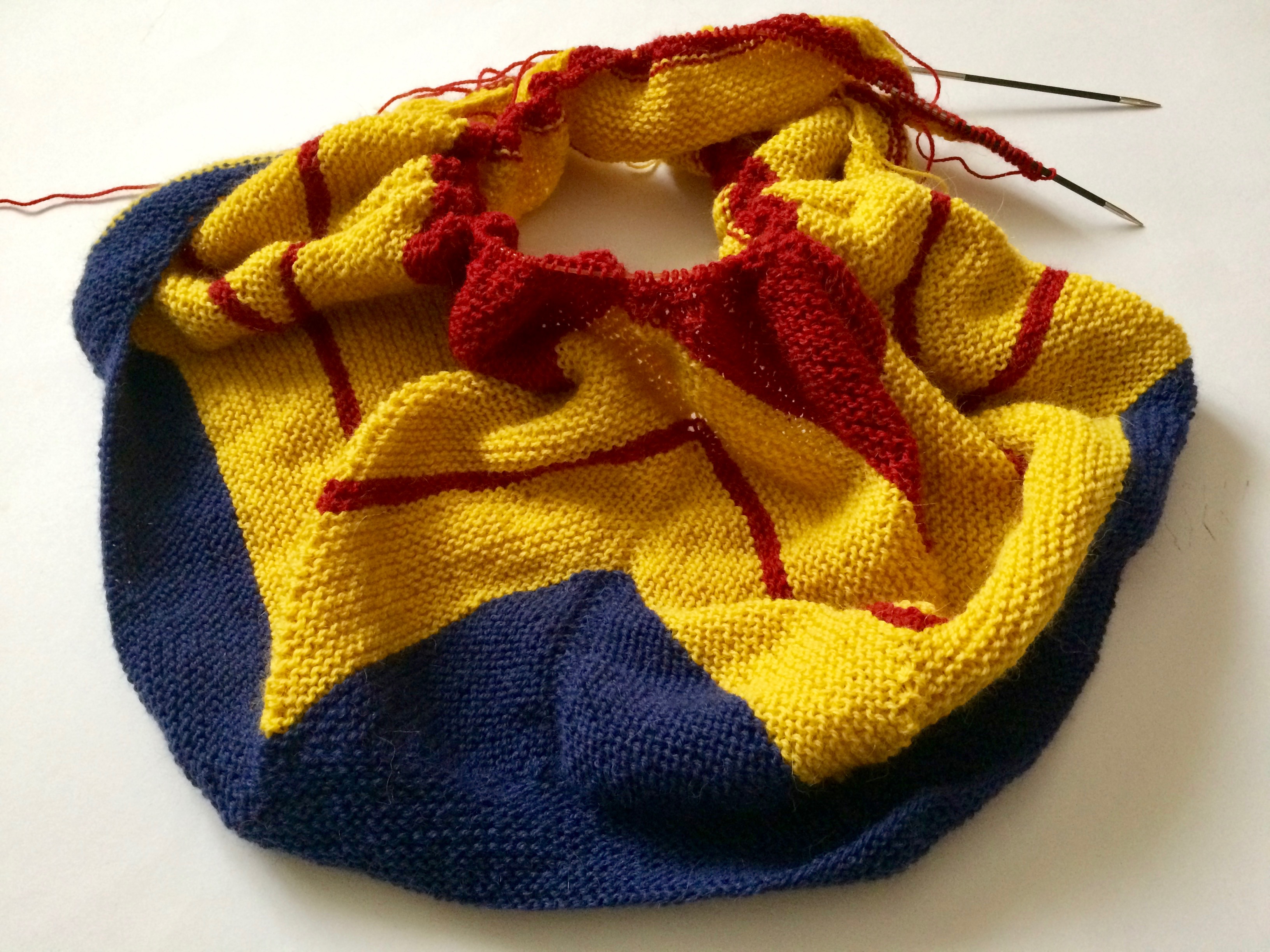 Jetzt bin ich an den letzten 20 Reihen. Sie ziehen sich bisschen, weil über 300 Maschen auf der Nadel sind, aber irgendwie macht es auch Spaß. Denn ich denke immer an die Freundin, der ich ihn schicken werde, wenn er fertig ist. Weil in ihr soviel Wonder Woman ist. Aber das erzähle ich Euch irgendwann anders. Vielleicht.