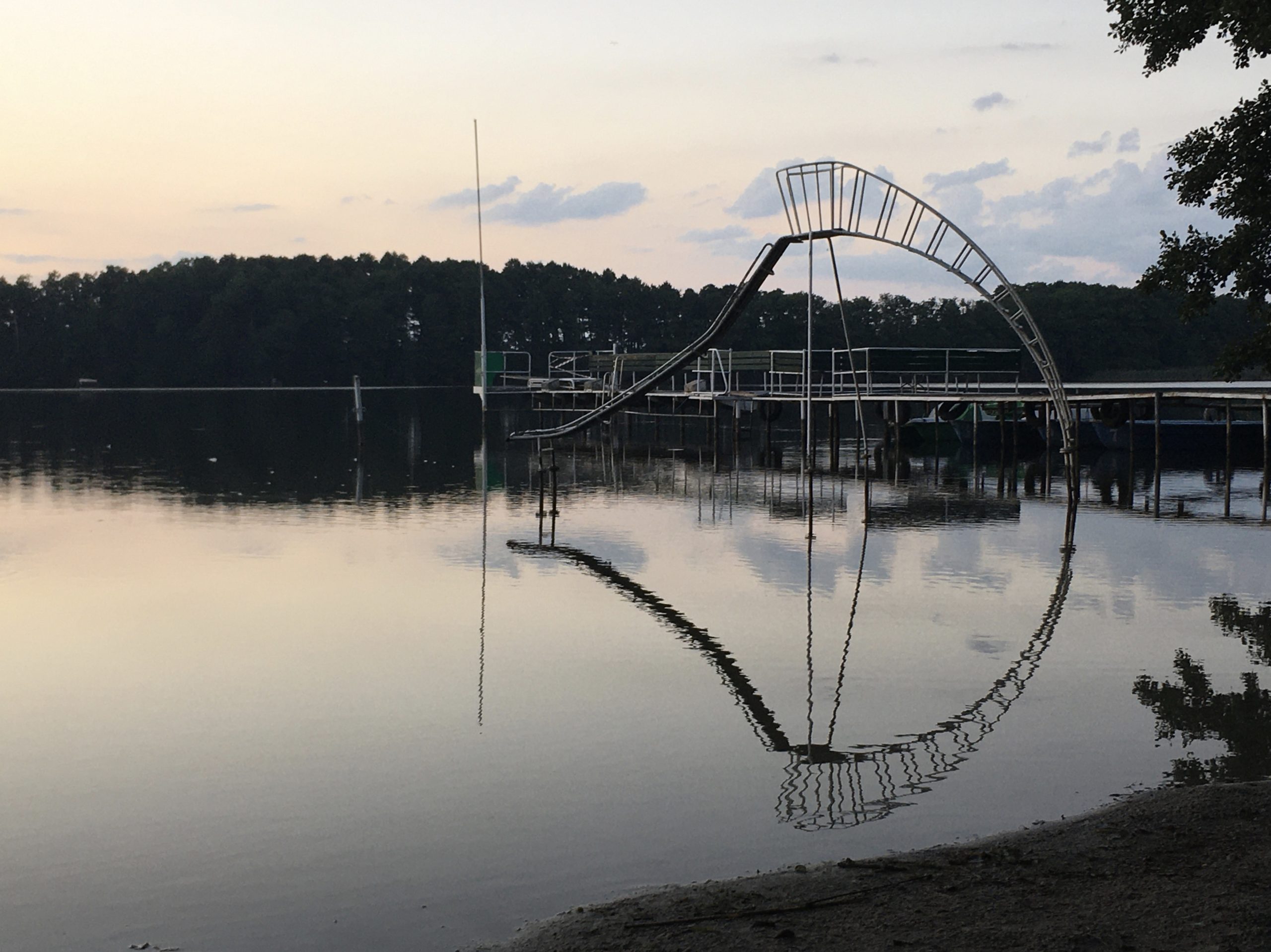 Am Nachmittag, als es nicht mehr wie aus Eimern goß, sind wir kurzentschlossen ins Auto gestiegen und an einen der vielen Seen im Berliner Umland gefahren. Schon der Weg dorthin war toll. Weite Felder rechts und links der Strasse, auf denen der Nebel stand. Am See angekommen, haben wir dann zugesehen, wie die Sonne rot-orange ins Wasser fiel. Später, als die Schwäne schlafen gegangen geschwommen sind, sind wir zurück in die Stadt gefahren.