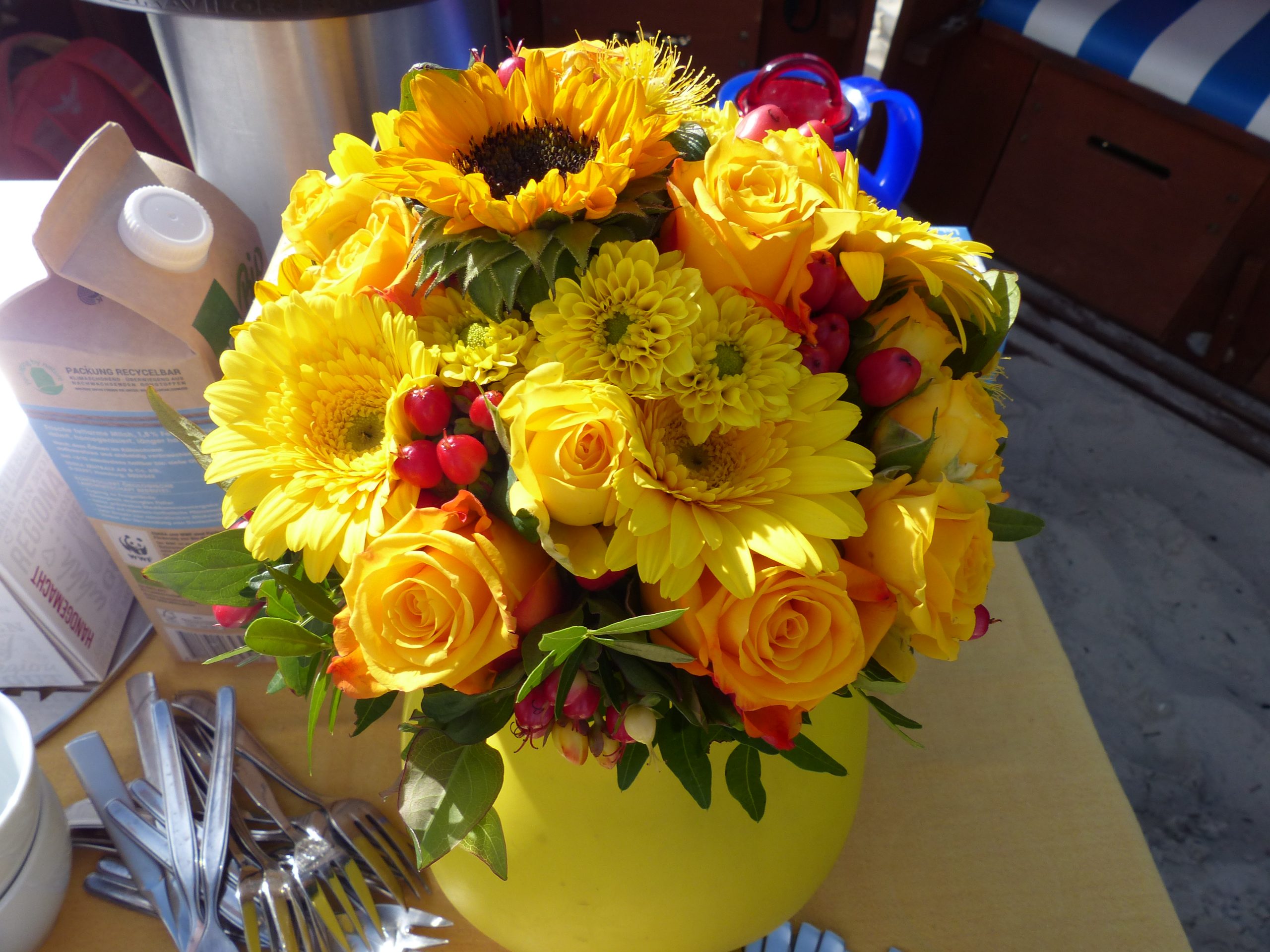 Die Braut trug weder weißes Kleid noch Schleier. Stattdessen ein großes, kobaltblaues Tuch, das ganz wunderbar im Wind flatterte. Der Bräutigam war (bald) ohne Jacke, dafür mit sonnengelbem Brautstrauß, einige der Gäste waren barfuß im Sand. Alle waren ein bißchen Hippies und anstelle von Blumen streuenden Kindern pusteten gestandene Herren Seifenblasen, dass es eine Freude war.