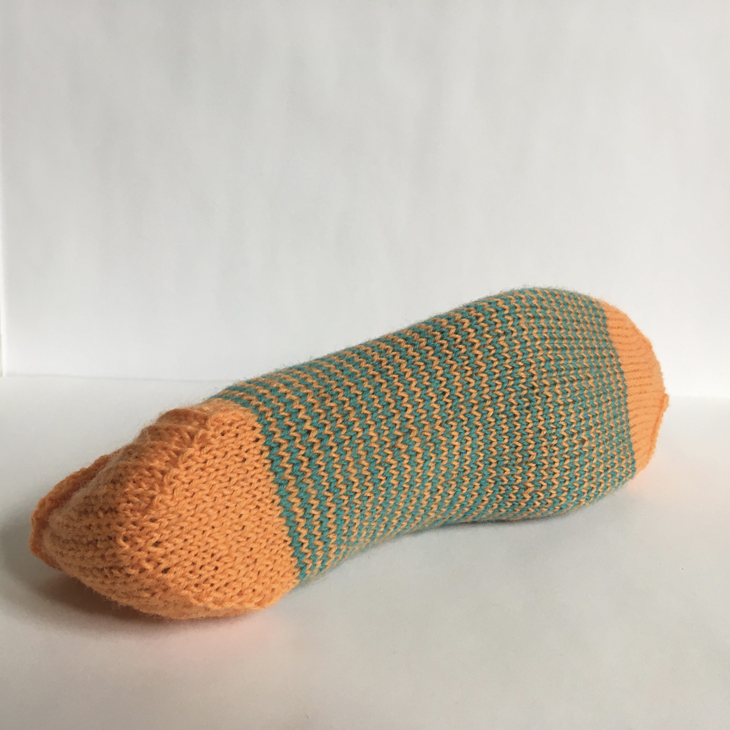 Das Tolle an dieser Technik? Jede Farbfläche hat ihr eigenes Knäuel. Es gibt nicht einen einzigen Spannfaden auf der Rückseite der Arbeit. Stattdessen werden die Fäden gekreuzt, so dass keine Löcher entstehen. Damit sind beide Seiten schön, das Gestrick ist leichter als FairIsle und auch große Flächen in unterschiedlichen Farben sind kein Problem. „Malen“ mit Wolle – ich mag das sehr.