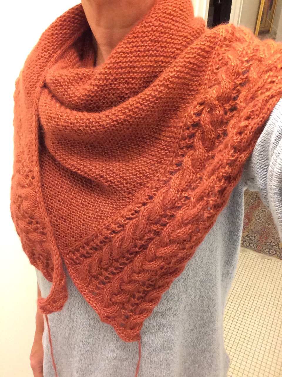 Also ribbeln bis zur Hälfte. Und dann neu. Wenn ich die Form verändere, wenn es mir gelingt aus einem asymmetrischen ein symmetrisches Tuch zu machen, wenn das mit dem Muster funktioniert, wenn … Am besten fange ich gleich damit an.