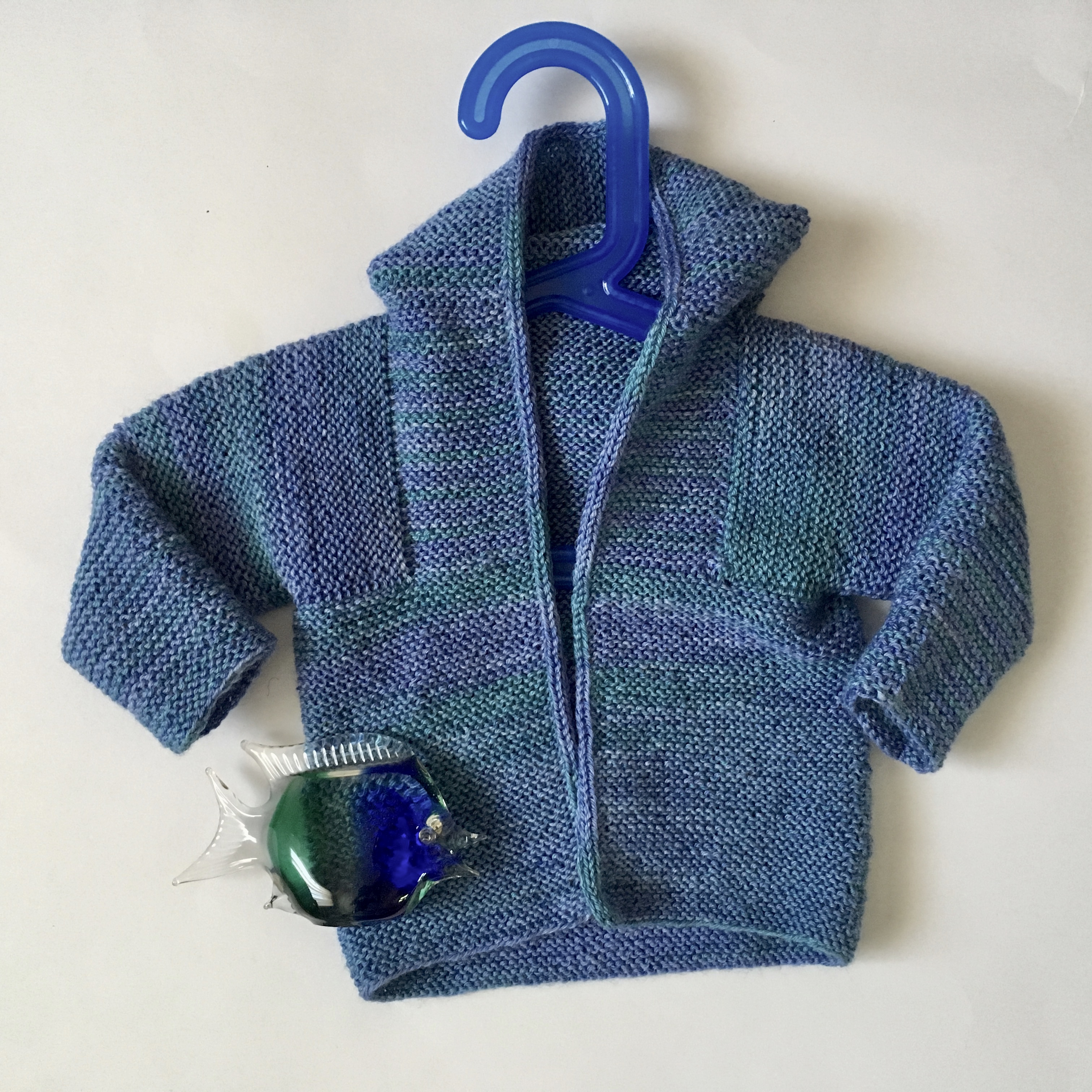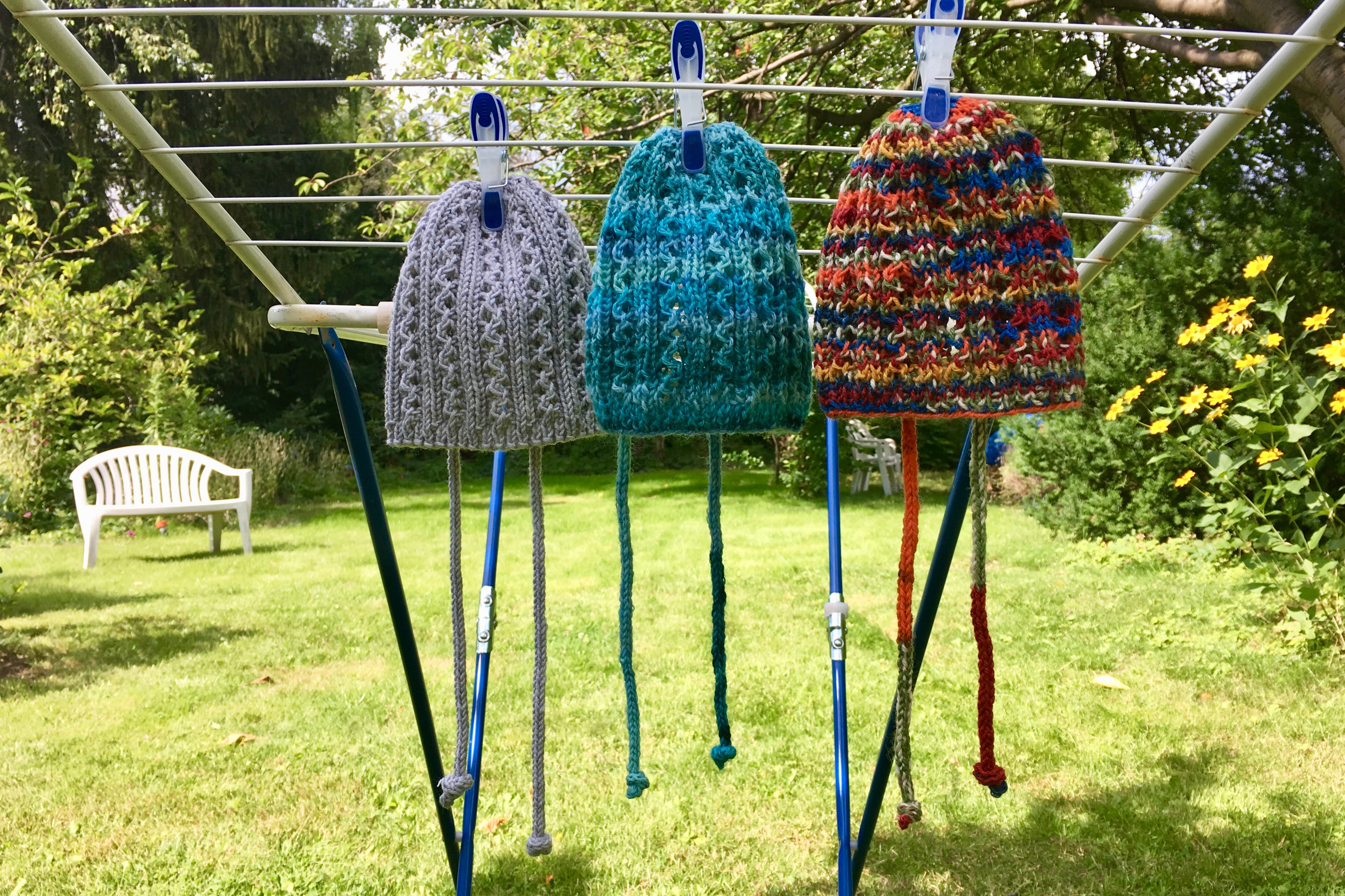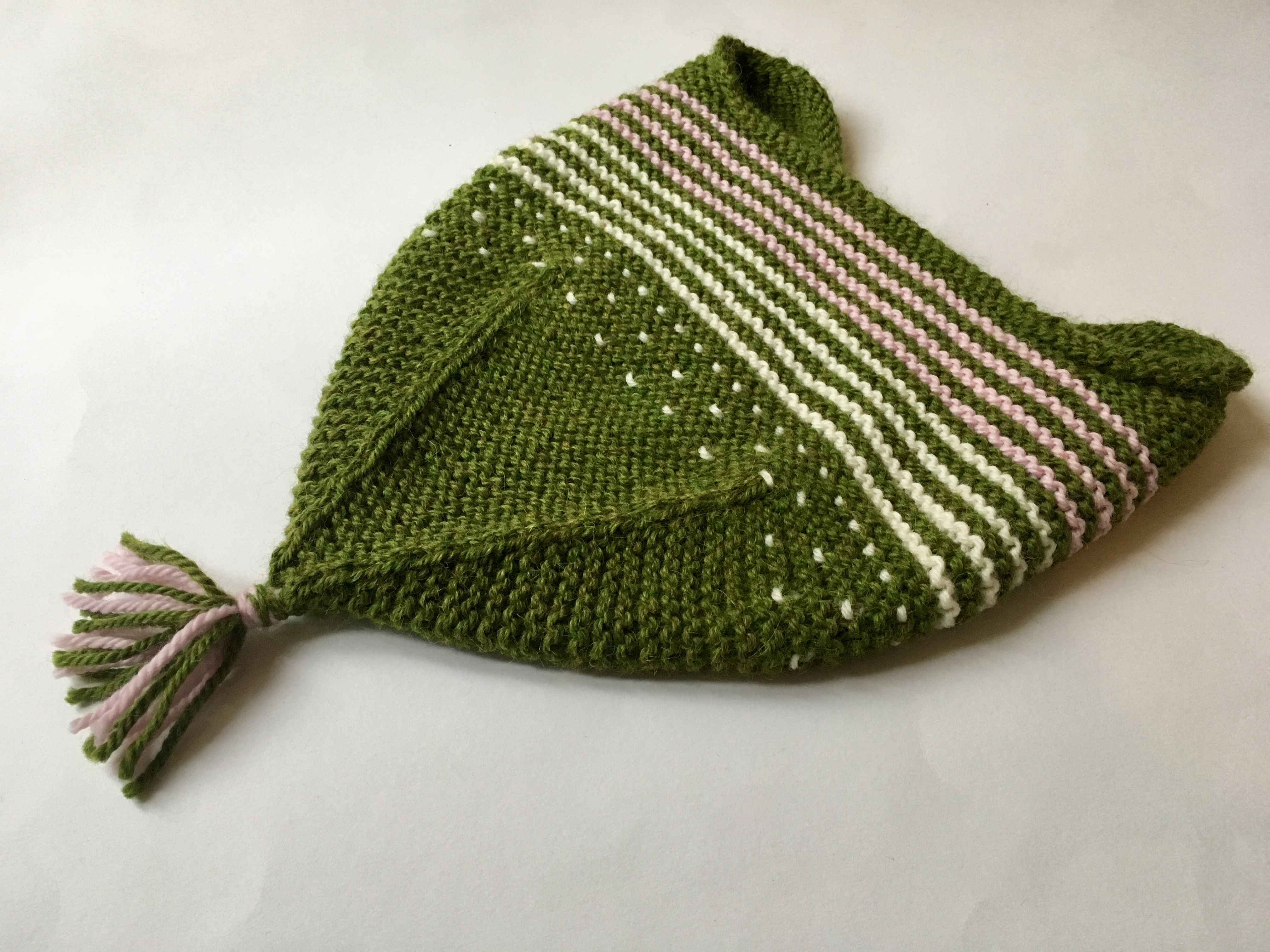 Am Anfang waren die Reihen kurz und mit jedem neuen Streifen wuchs meine Begeisterung. Erst irgendwann auf halber Strecke, als die bunten Knäuel zu Ende gingen, schwante mir, dass das wohl ‚was Größeres werden würde (…). Aber nachdem das Stricken unverändert Spaß machte und hier noch ein passender Strang von Sun Valley Fibers in der Farbe Purple lag, hörte ich nicht auf, sondern machte weiter.