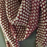 Das zweite Tuch mit Punkten ist auch fertig – nach dem Roten nun ein Blaues – aber schöne Bilder habe ich noch nicht gemacht. Deshalb hier: einmal Ausschnitt im Lampenlicht. Weiß der Himmel, warum die blauen Punkte aussehen wie Quadrate.