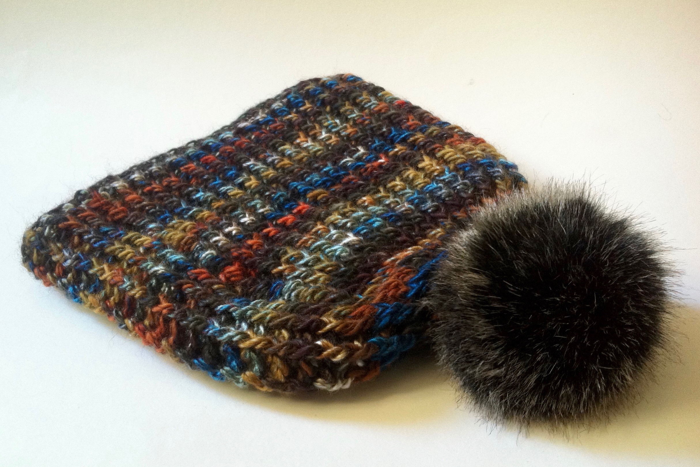 Aber der Knaller ist, dass Red Heart Reflective nicht zufällig so heißt: in dem Garn ist ein reflektierender Faden, der leuchtet wenn Licht darauf fällt. Der kratzt zwar ziemlich, aber das Garn ist schön weich und vielleicht hat der Reflektorfaden die Nichte deshalb (bisher) nicht gestört. Vielleicht nimmt sie es aber auch in Kauf weil sie weiß dass das Leuchten vom Faden kommt. Das eine Knäuel hat genau für eine Kindermütze mit Pompom gereicht.