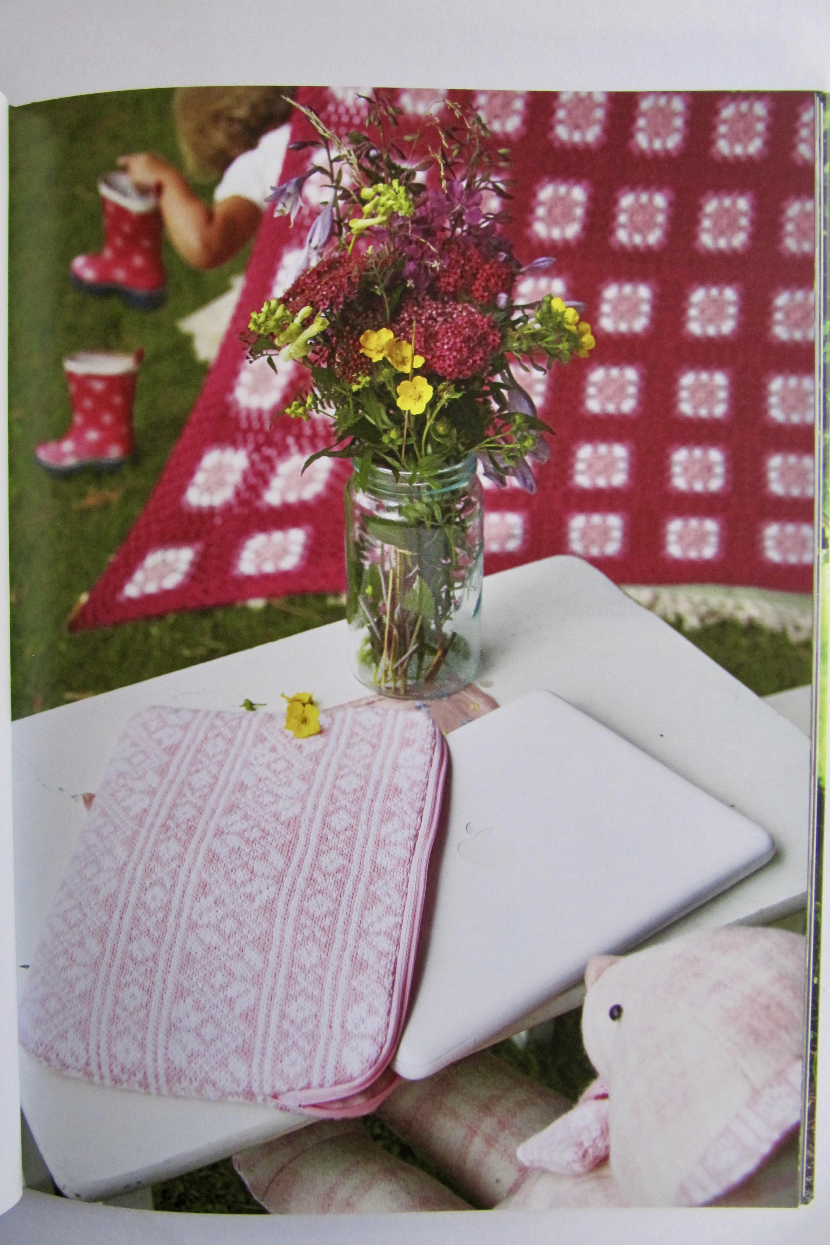 Der Sessel ist auf einer der ersten Seiten und ich weiß noch wie begeistert ich beim ersten Durchblättern des Buches war, als ich das Muster gesehen habe … bis ich festgestellt habe, dass fast alle der genannten Dinge in genau dem Muster gestrickt sind. Die Strümpfe und Socken, Kissen und Sessel, Beutel und Decken, sogar die LED Lampe. Immer das Gleiche.