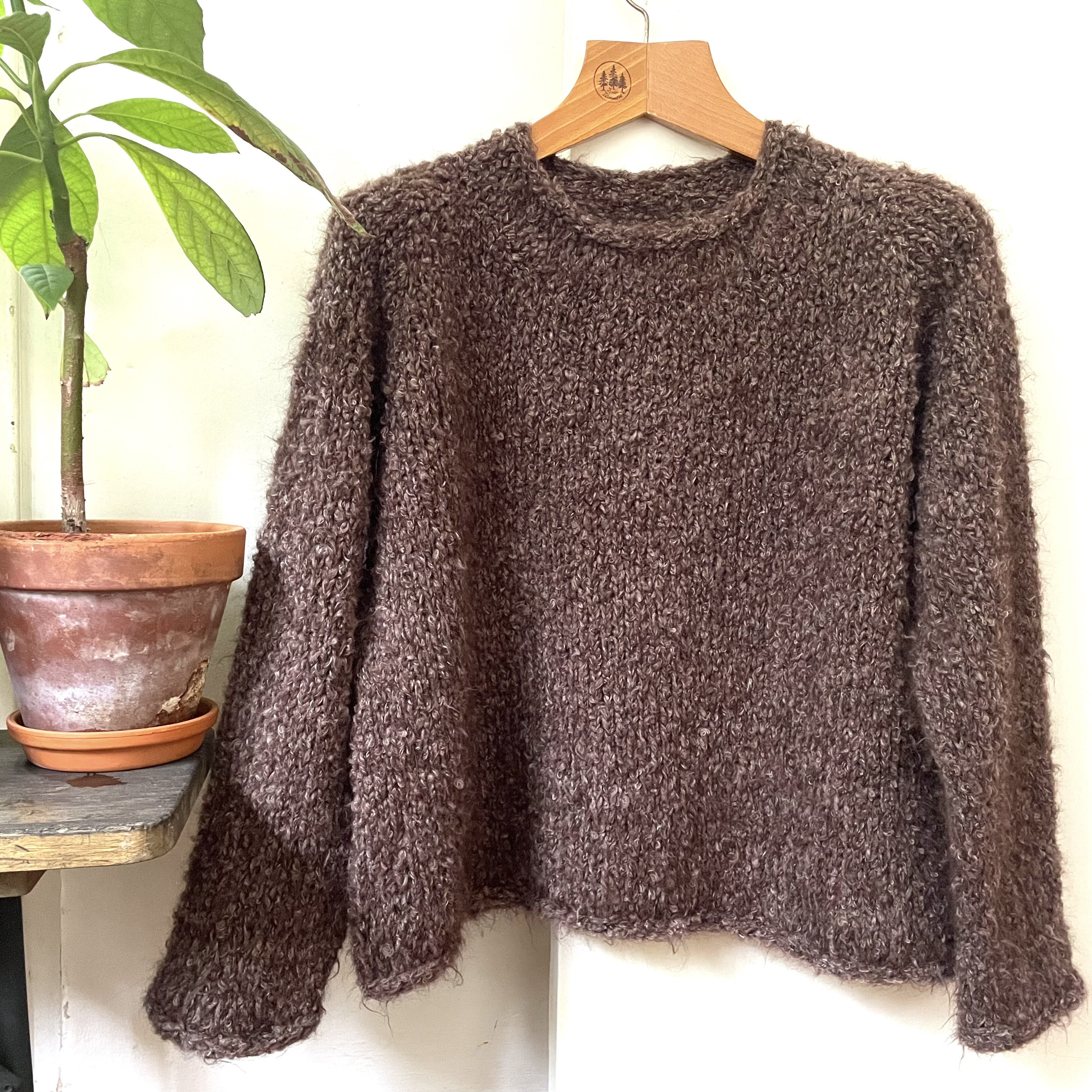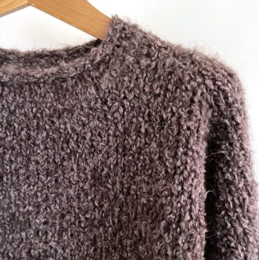 Genauso geholfen hat mir – wie kann es anders sein? – ein neuer Pullover. Gestrickt in Rowan Soft Bouclé, ist es eine weiche, warme Wolke geworden. Die Wolle habe ich vor einiger Zeit bereits gekauft, lange bevor Bouclé plötzlich angesagt war. Das kam wohl auch für Rowan unerwartet. Hätten sie das schöne Garn sonst um 60% reduziert? Hellgrau hätte ich gerne gehabt, das war ausverkauft. Also wurde es braun. Auch eine „Fellfarbe“ und damit das, was ich mir gewünscht habe (kam abends natürlich auf die Liste der schönen Dinge).
