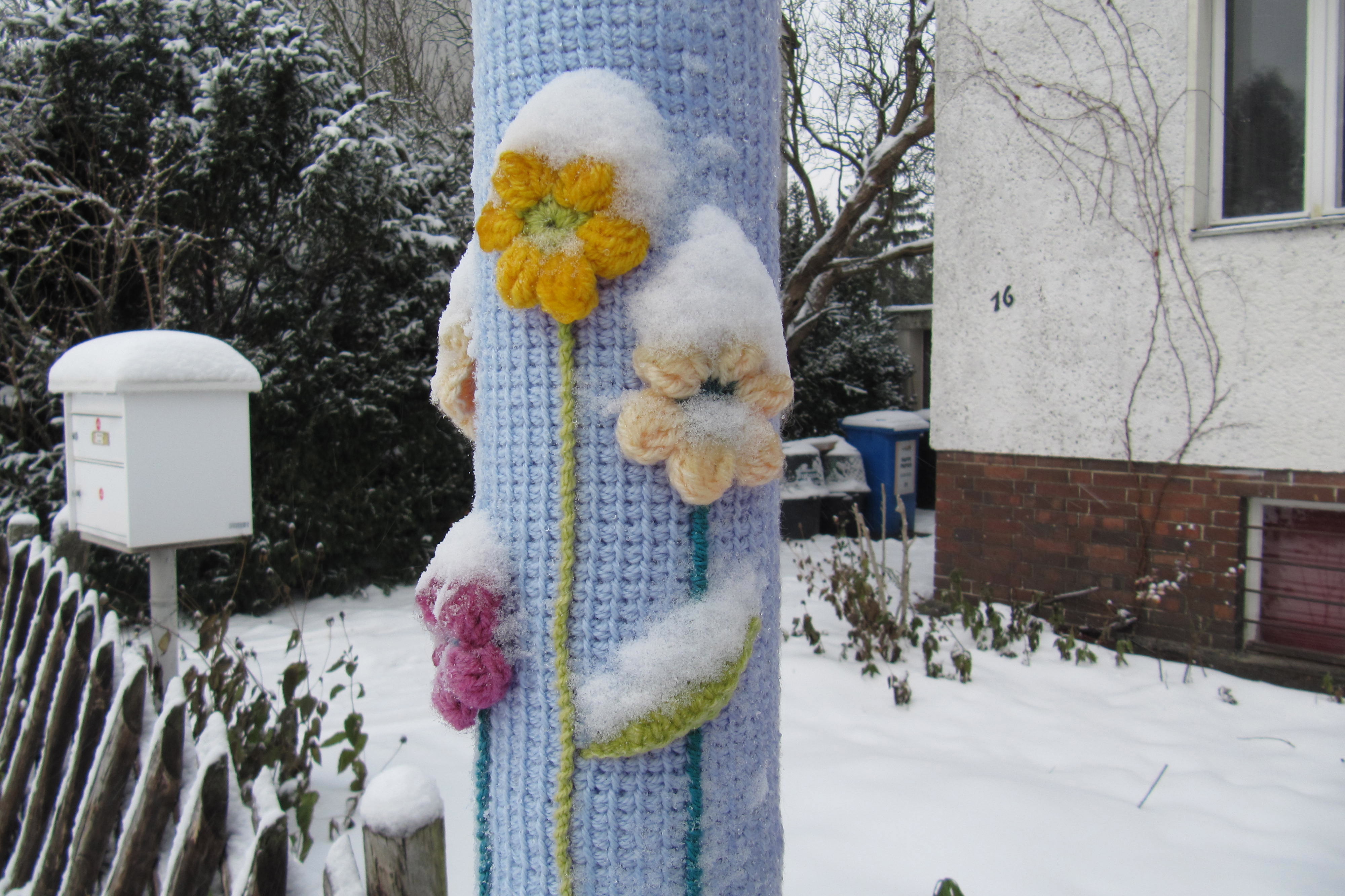 Für den Chef stricke ich auch noch einen. Und für meine Schwester. In Vereinsfarben. Dann hält der Kaffee länger warm, wenn sie im Winter am Fußballfeld steht, um ihre Jungs anzufeuern 🙂