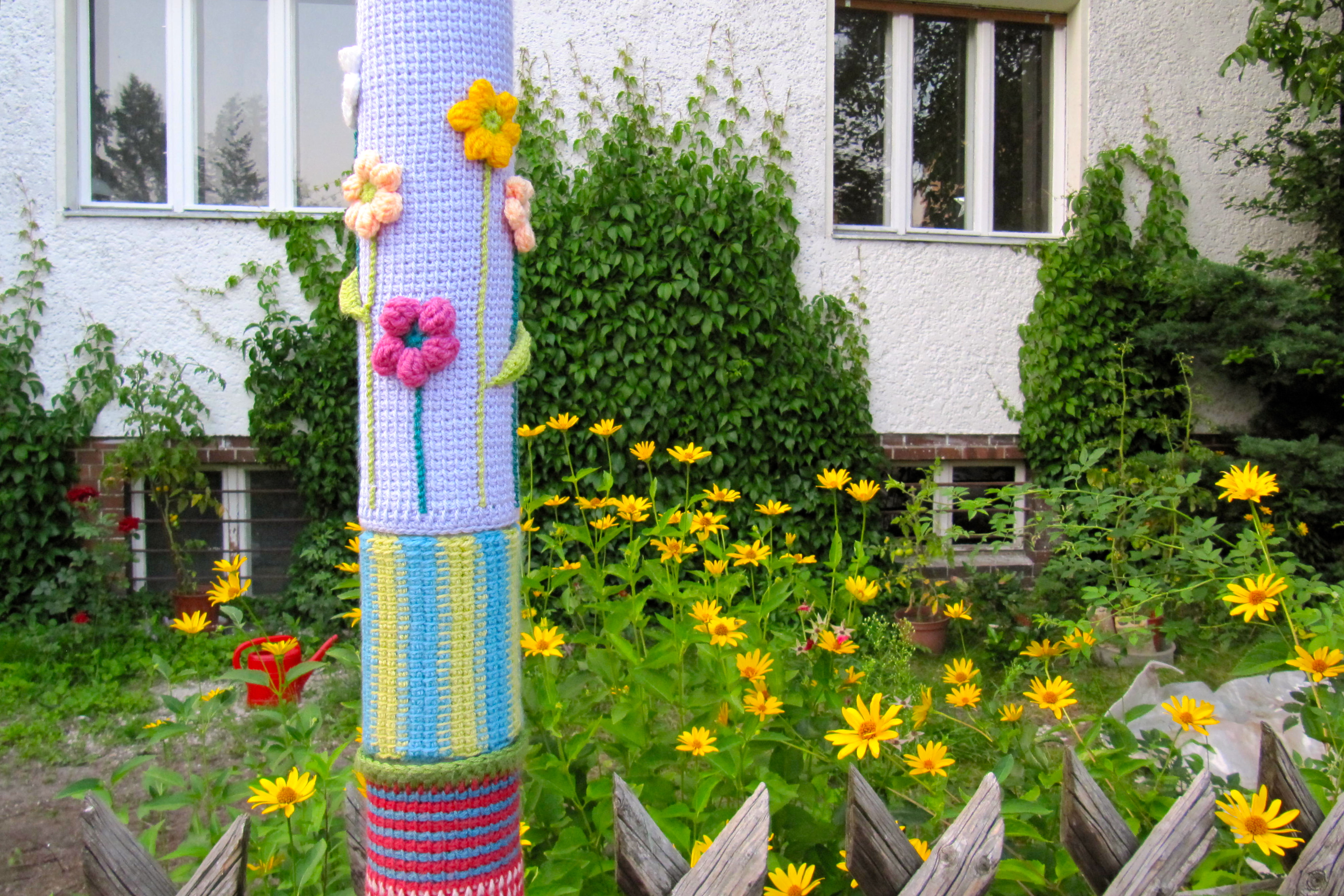 Ein Bier-Handschuh – verrückt, oder? Das habe ich echt noch nie gesehen. Braucht wahrscheinlich auch niemand. Es ist in der Idee sowas wie ein Fausthandschuh, der die Hand in „Becherhaltung“ zwingt. Gestrickt und um einen gehäkelten Boden erweitert. Da passt eine kleine Flasche rein oder eben ein Glas. Unisex und für Rechts- und Linkshänder gleichermassen.